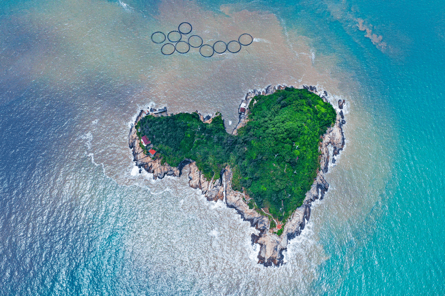 在炎亭湾南500米的海上,还有一岛名为“前屿岛”,全岛绿树如茵,因形状像爱心,又被游客称为“爱心岛”。电影《吹过你吹过的风》即将在苍南全程拍摄,炎亭爱心岛是主要取景地之一,到时将就景造景打造成爱情旅游胜地。