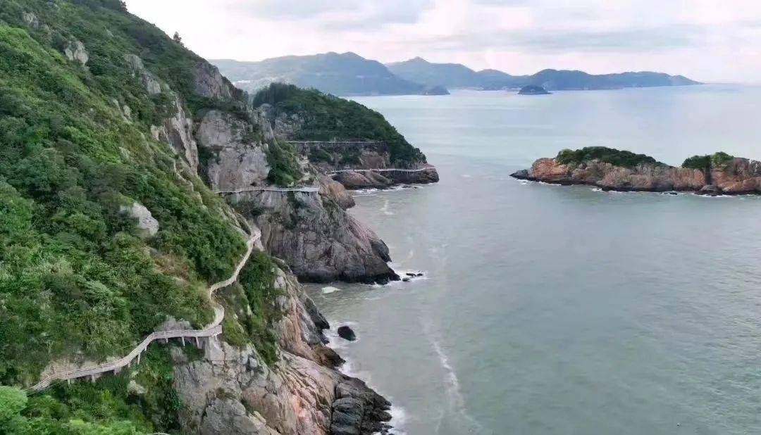 滨海栈道沿临海涯壁而建,漫步栈道,望崖边潮涌,远眺海天一线,零星船舶与浩渺大海透出几分“沧海一粟”的禅意。近赏海浪拍岸,聆听东海涛声。
