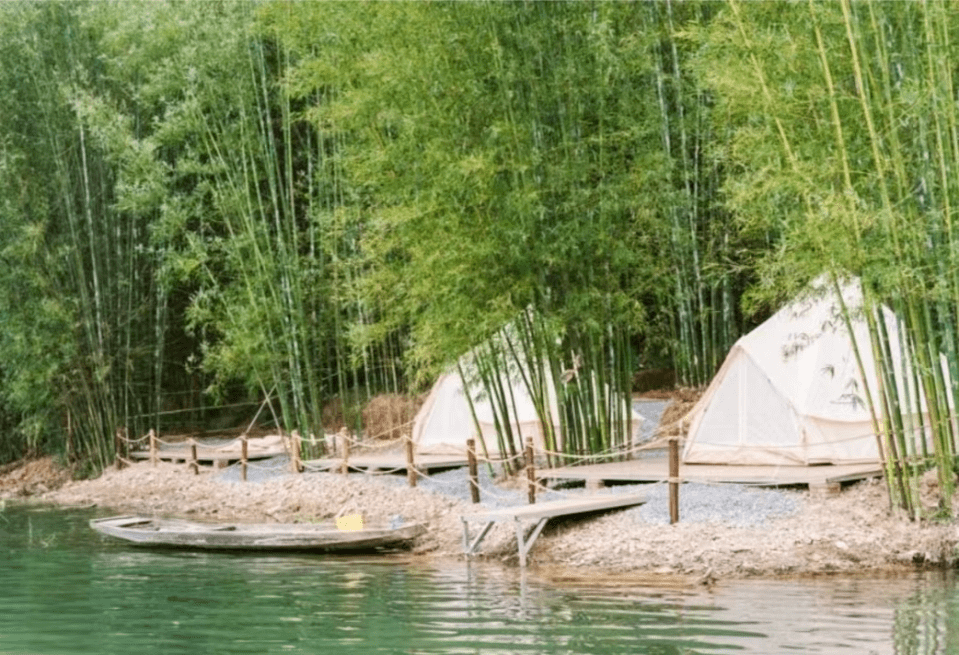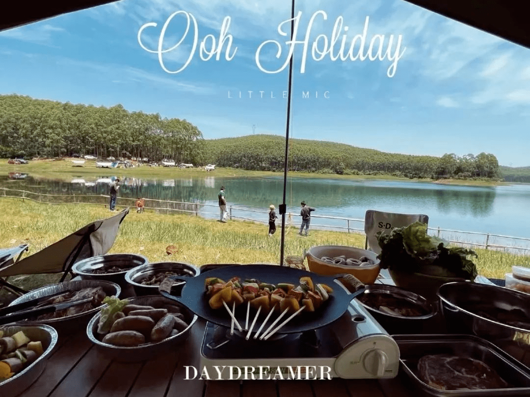 在湖畔寻一处平坦地,搭上帐篷,搭起天幕,即可享受露营野趣。