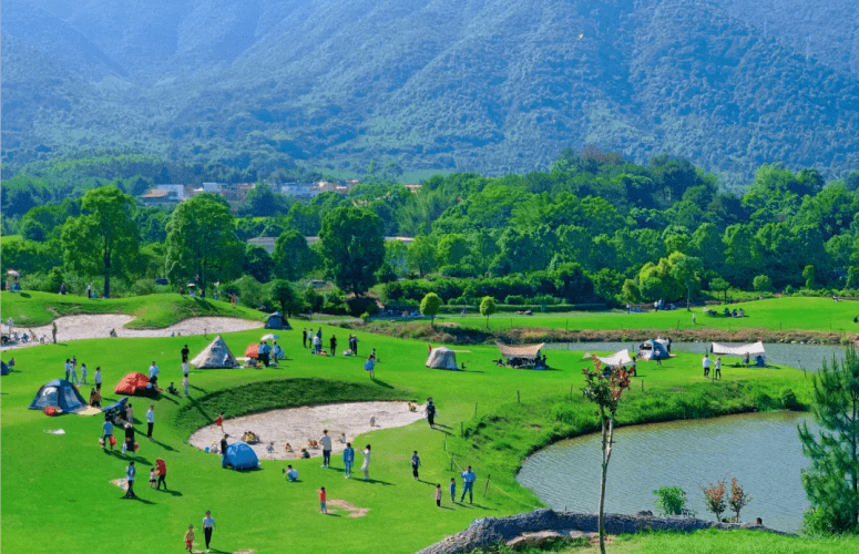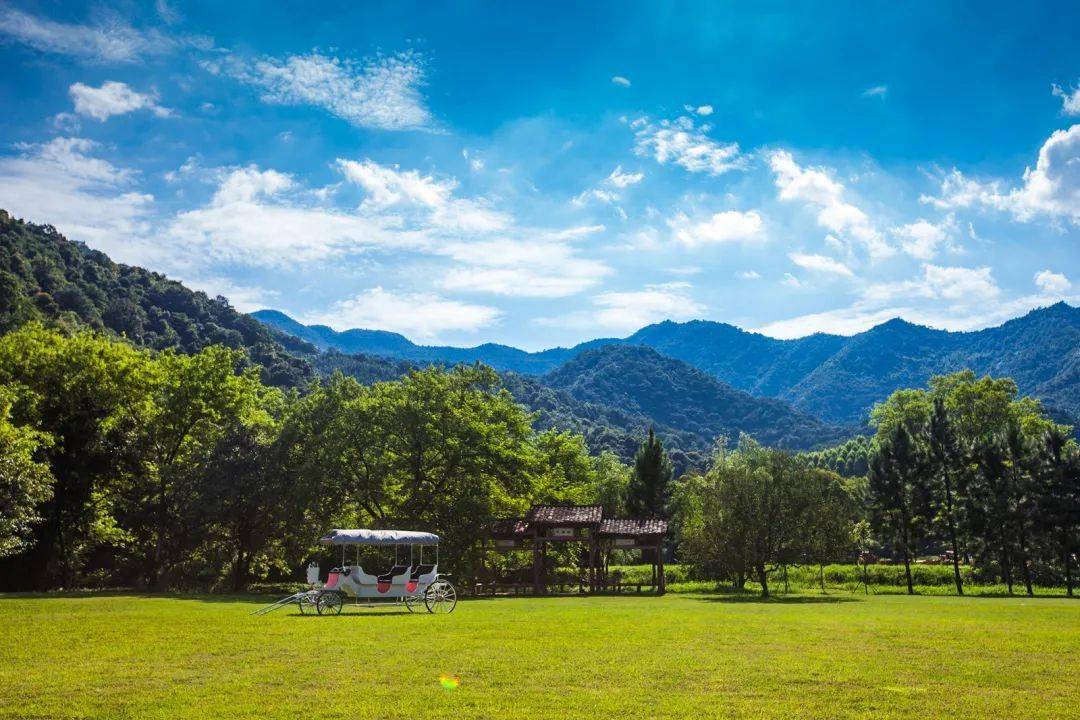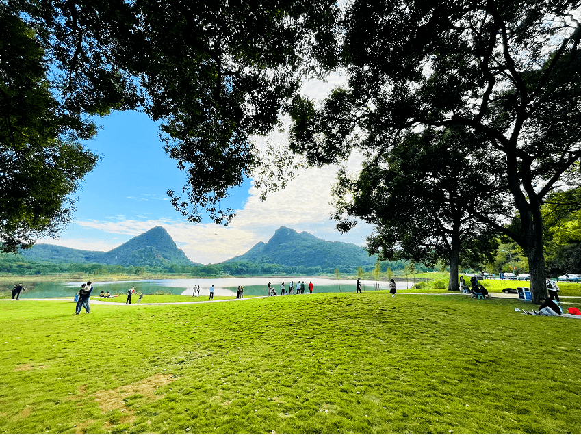 山城水都拥有大面积的草坪,是 出游野餐极佳之地!四周环山,空气清新,真是治愈力满满。