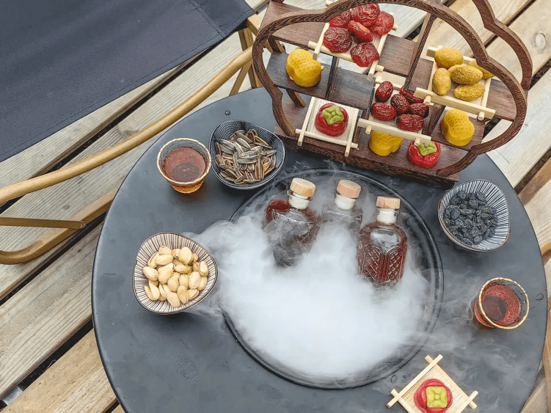 在碧绿的湖畔草坪上,三五好友听着咕噜咕噜的煮茶声,围着炉子聊天,每个帐篷下都是一幕幕温馨欢笑的场景。