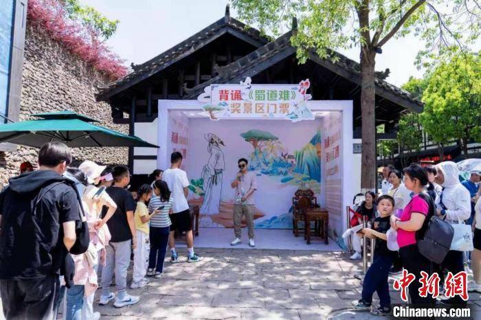 图为游客排队背诵古诗《蜀道难》。 王春波 摄