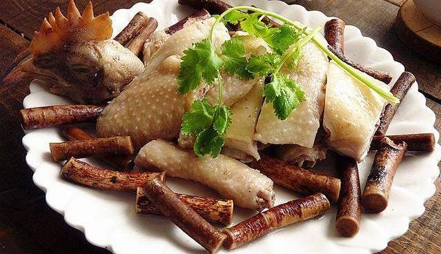 无鸡不成宴的国人餐桌,可见鸡是扮演多么重要的角色,鸡肉味道鲜美且有营养,做法多多,广东人却是最爱吃白切鸡,鸡肉清甜,皮爽肉滑,喜爱原味的人肯定最爱这种吃法;五指毛桃白切鸡做起来也不复杂,只是把鸡用五指毛桃煮出来的水泡浸至熟,鸡肉有着不浓不淡的五指毛桃味道,并不掩盖鸡本来的肉味,不用沾调味料也很好吃。