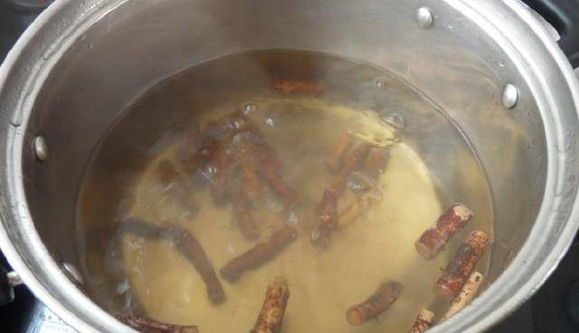 把鸡放回锅里,五指毛桃水在微沸的状态下泡浸着鸡25分钟