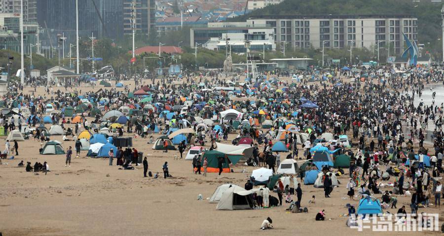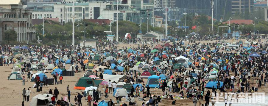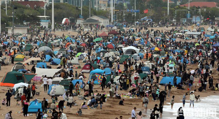 5月2日,青岛石老人浴场沙滩,成为了帐篷的海洋。从高处俯瞰浴场沙滩,密密麻麻的各色帐篷,形成一道风景线。五一假期,市民们来到沙滩上扎帐篷游玩,吃美食、喝啤酒,愉快地欣赏美丽的大海景色。