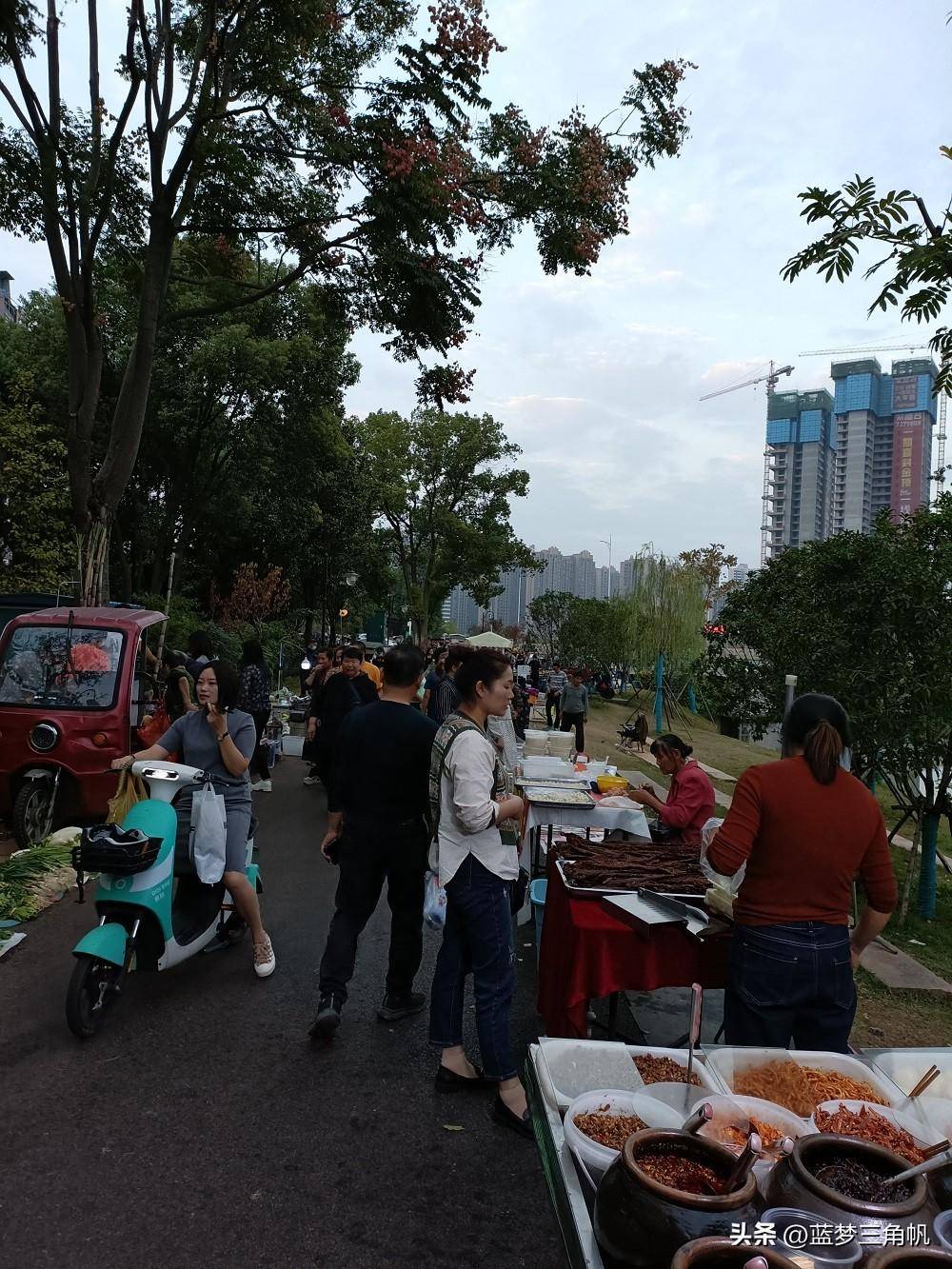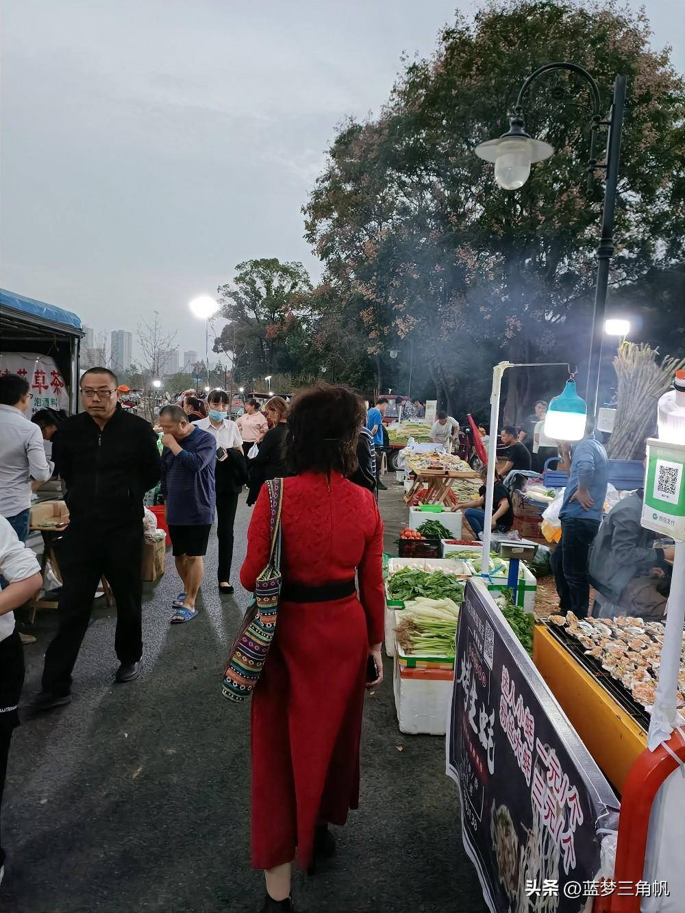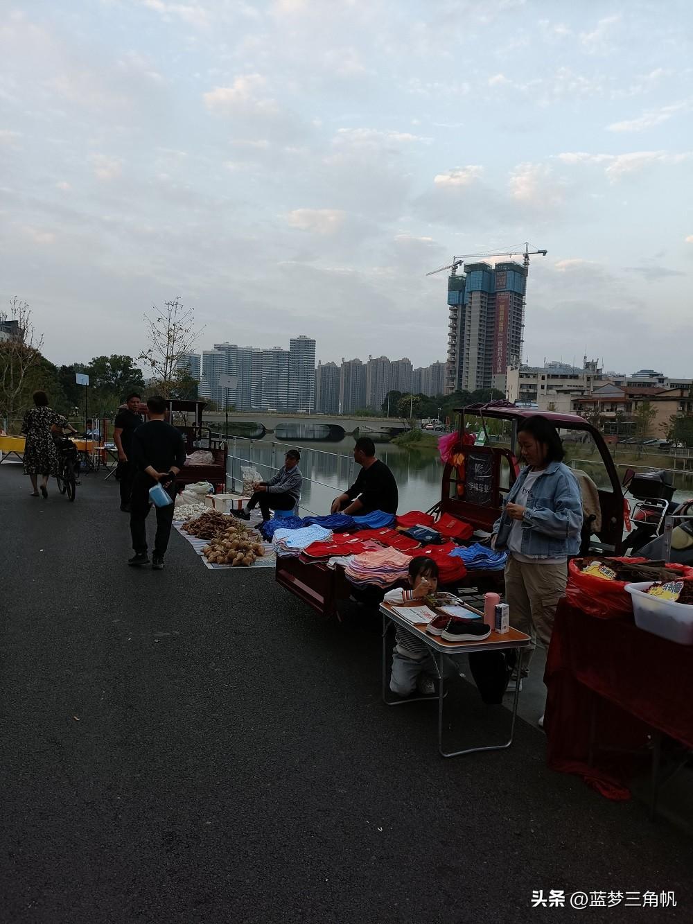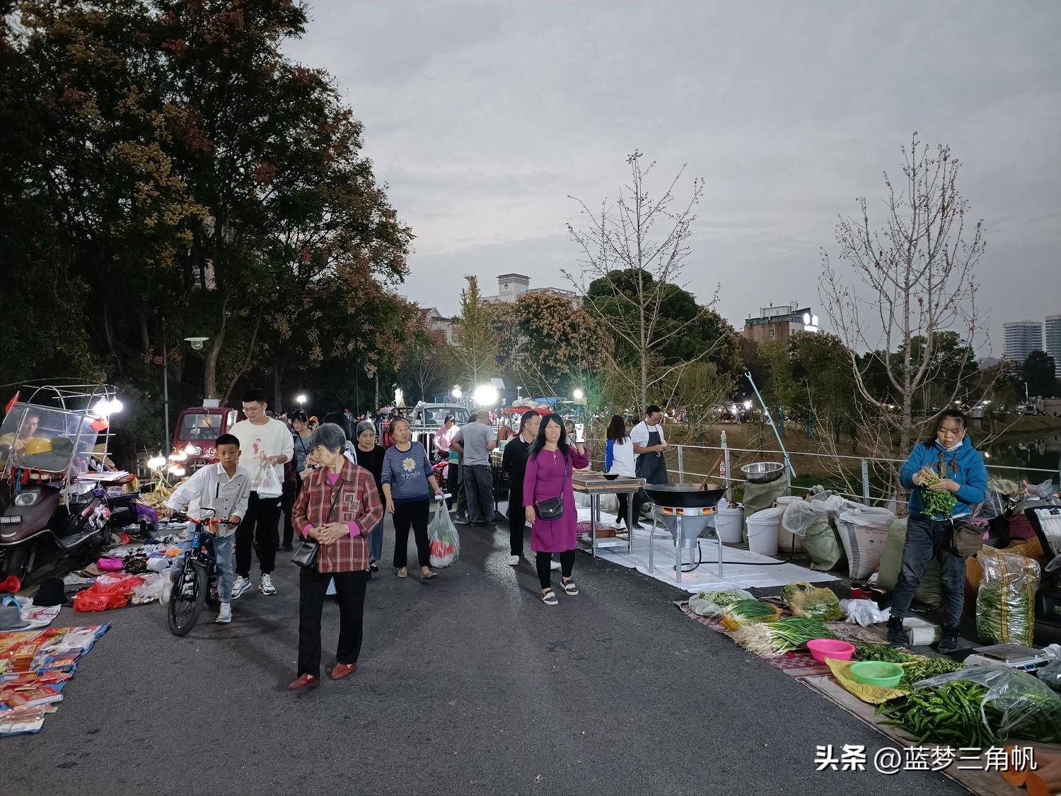 这可能是常德最大的地摊市场,真是热闹非凡,每晚流如潮,又一条“河街“,位于三闾港洞庭大道与青年路之间那段的西岸风光带,卖什么玩意儿的都有,如蔬菜,水果,日常用品。鲜花,各种小吃和烧烤,还有不少外省特色小吃,简直五花八门,一些外省的水果直接把车开到那里卖。下午5点去时还不是很多,等到7点左右就多得不得了,这地摊市场长800米左右,许多附近的下班就在那里练摊,包括一些年轻。市场需要丰富多彩,也是让回味过去。欧洲许多城市也有这样的集市,伦敦市区就有,这更富有一种生活情趣。这倒也成了常德一大特殊风景。以前经常专门跑到乡下逛圩场,现在不需要了,哈哈哈,常德的“斯卡布罗集市”啊。据生意还很不错,摆摊的越来越多,气也越来越旺,只是目前常德知道的还不多。这里有专门的垃圾桶,也强调过卫生要求,摆摊完必须自己清理垃圾,看看地面还很干净,常德市民素质很高的,不会乱丢东西。以前常德水星楼商业广场露天步行街开始没气,后来就让别摆地摊,结果搞火了,后来就建了成排的摊位小房,后来总是流如潮,弄成了常德最的小吃世界和网红卡地,每天夜晚真是流如潮。