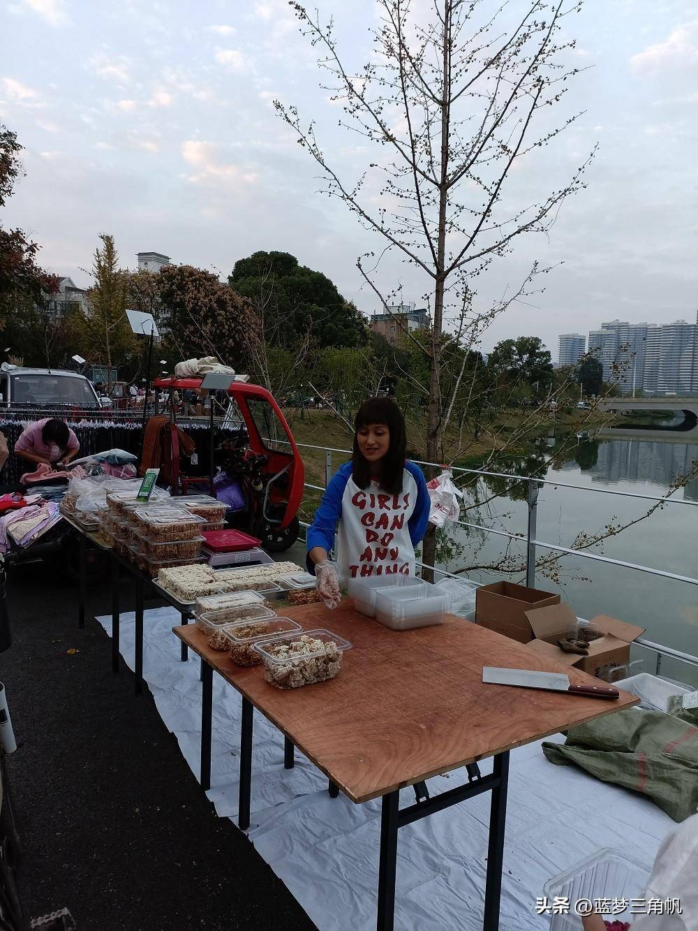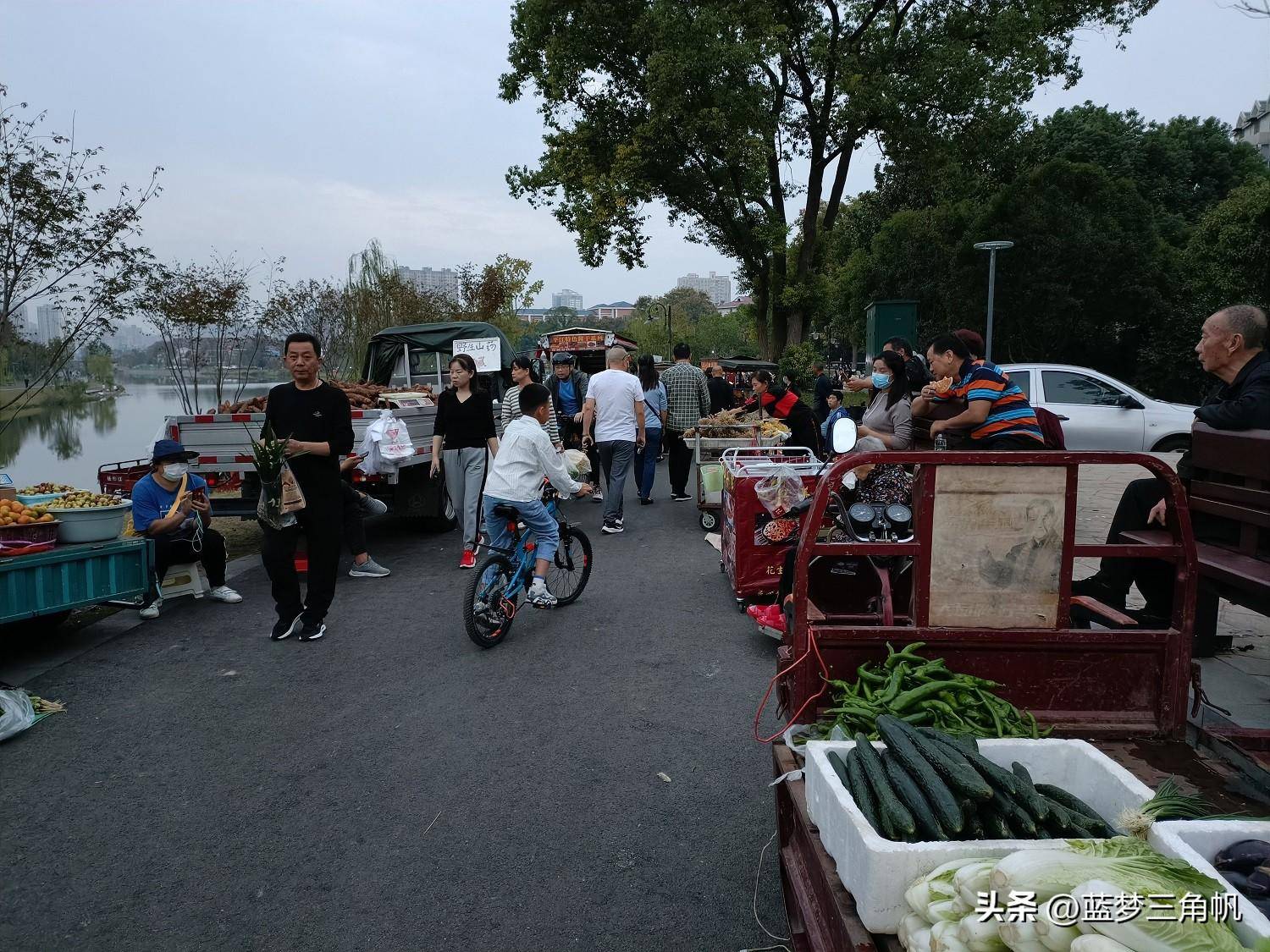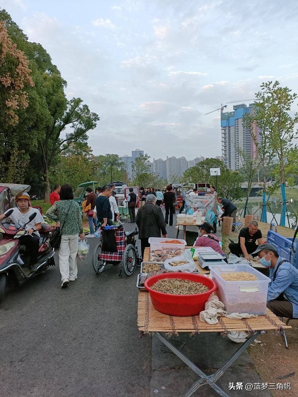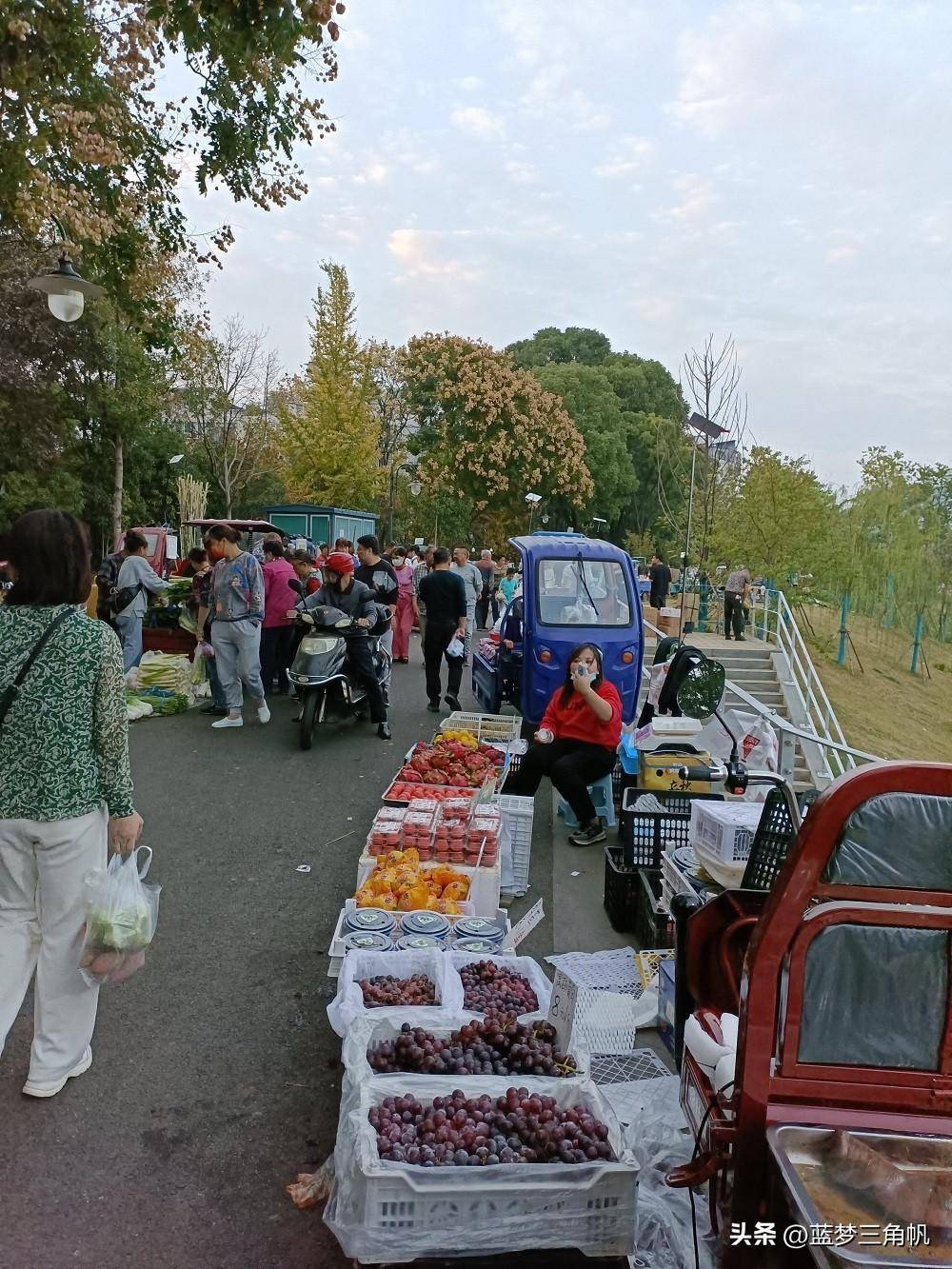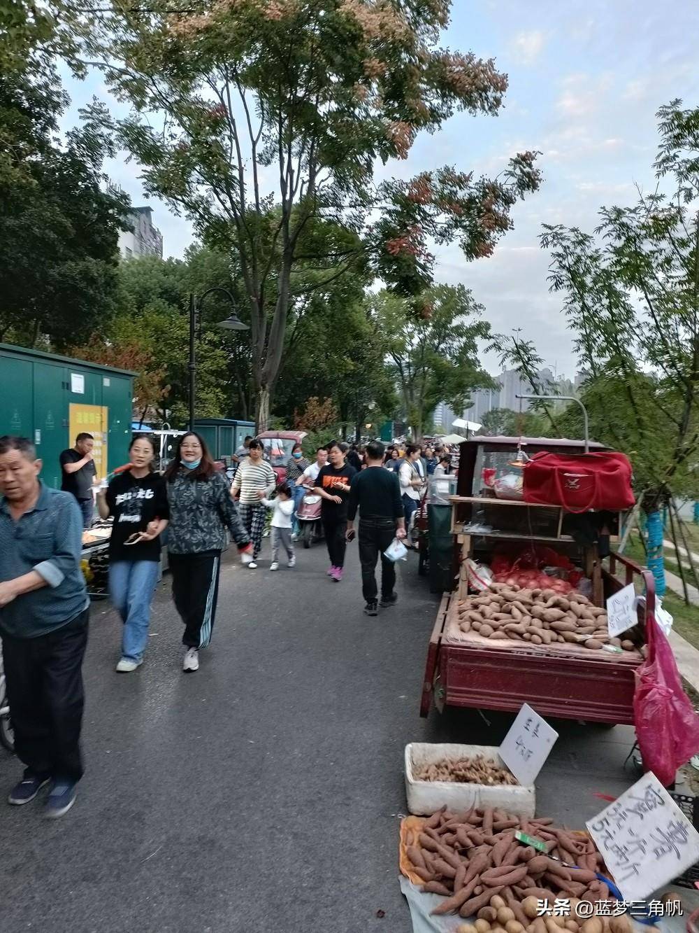 这可能是常德最大的地摊市场,真是热闹非凡,每晚流如潮,又一条“河街“,位于三闾港洞庭大道与青年路之间那段的西岸风光带,卖什么玩意儿的都有,如蔬菜,水果,日常用品。鲜花,各种小吃和烧烤,还有不少外省特色小吃,简直五花八门,一些外省的水果直接把车开到那里卖。下午5点去时还不是很多,等到7点左右就多得不得了,这地摊市场长800米左右,许多附近的下班就在那里练摊,包括一些年轻。市场需要丰富多彩,也是让回味过去。欧洲许多城市也有这样的集市,伦敦市区就有,这更富有一种生活情趣。这倒也成了常德一大特殊风景。以前经常专门跑到乡下逛圩场,现在不需要了,哈哈哈,常德的“斯卡布罗集市”啊。据生意还很不错,摆摊的越来越多,气也越来越旺,只是目前常德知道的还不多。这里有专门的垃圾桶,也强调过卫生要求,摆摊完必须自己清理垃圾,看看地面还很干净,常德市民素质很高的,不会乱丢东西。以前常德水星楼商业广场露天步行街开始没气,后来就让别摆地摊,结果搞火了,后来就建了成排的摊位小房,后来总是流如潮,弄成了常德最的小吃世界和网红卡地,每天夜晚真是流如潮。