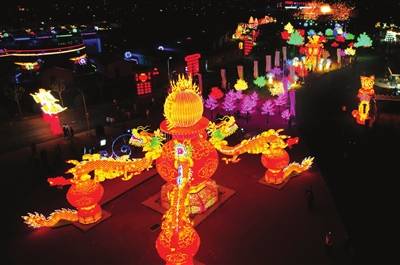 津南区小站镇迎新村民俗灯展点灯,绽放“五一”夜空中最美的风景。 本报记者 胡凌云 摄