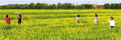西青区大寺镇海葵花农场种植的260余亩油菜花盛开。 通讯员 田建 本报记者 潘立峰 摄