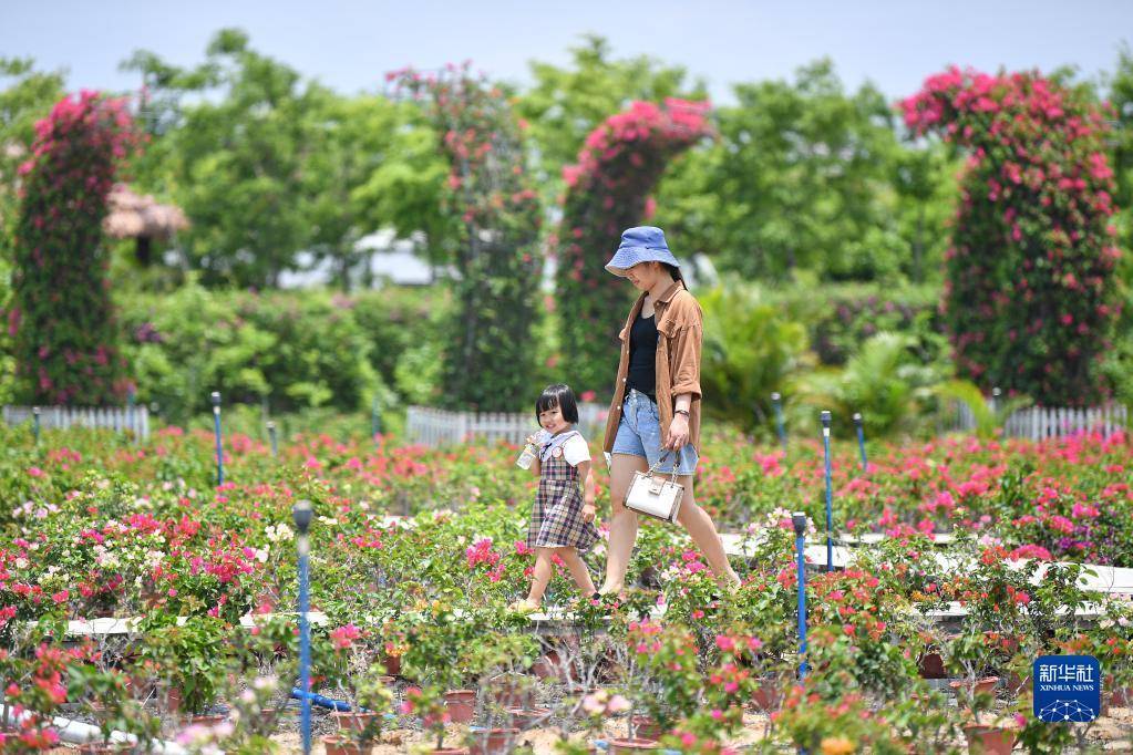 5月1日,游客在海南花梨谷文化旅游区游玩。