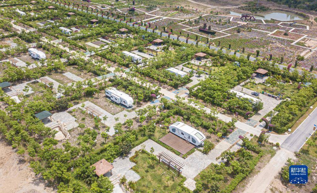 5月1日在海南花梨谷文化旅游区拍摄的房车庭院(无人机照片)。