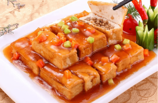 做出来的豆腐箱色泽金红,既有形,口感又很细腻,皮韧馅嫩,汁香味浓,是那种吃上一口,就令人忘不掉的味道。