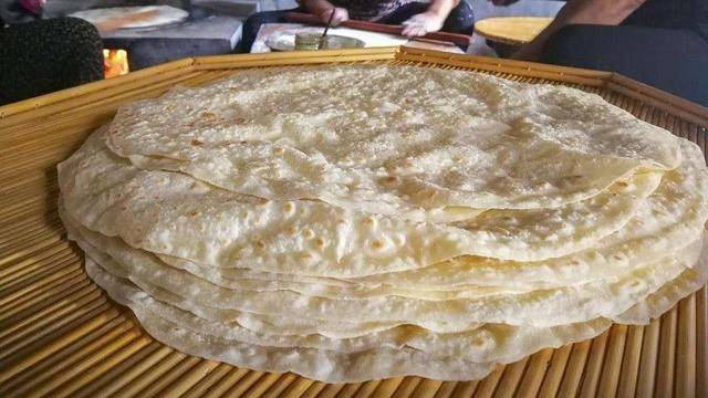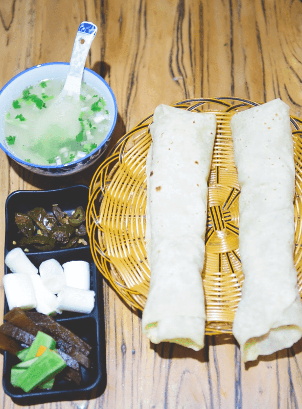 单饼:枣庄烧烤必备,传统面食,厚薄适中,有韧性,有嚼劲,既可单独食用,又可以搭配蔬菜和小葱、大酱食用。