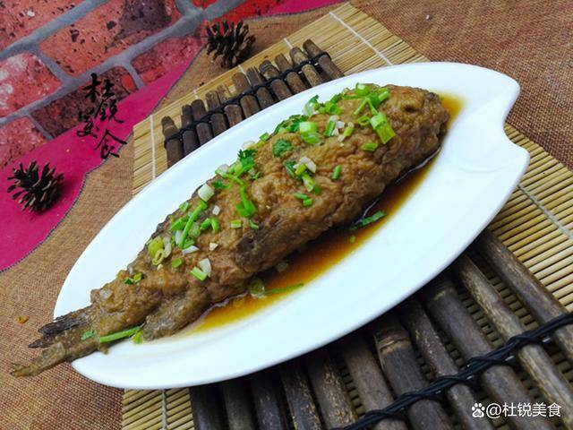 处理干净后简单腌制入味,拍薄粉煎至表面呈金黄色,然后红烧成菜。最后点缀香菜末,上菜时一般按位餐配置,人前一条。
