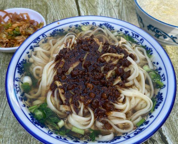 滕州面:面条比较细,却有韧劲,口感好,再加上炸制的肉酱汤汁,美味无比,搭配上滕州卖手擀面特有的雪菜,喜欢吃肉的再加块肥而不腻的有滕州特色的五花红烧肉,不喜欢吃肉的就加个鸡蛋或者豆腐卷,鸡蛋有煮而后和大肉一起浸制入味的,还有刚出锅的煎蛋。