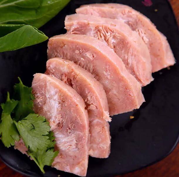 这样做好的粉肚浓香扑鼻,色泽很正,外形就像一个苹果,皮很细薄,富有弹性,里边的肉质紧密,红白相间,吃着香嫩爽口。