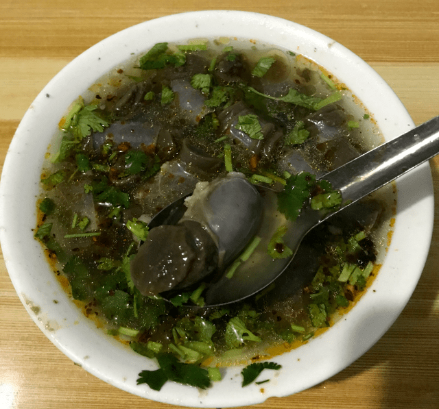 德州羊肠子:听说这是只有德州才会有的美食,是由羊肠皮灌入羊血、淀粉、香料,然后在加料的老汤里煮熟,撒点葱蒜,加点香菜,还能根据自己口味喜好添加各种辛香调料,刚出锅热热的吃,软软糯糯。