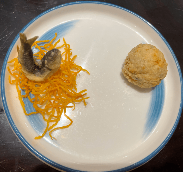 含羞丸子:来自山东枣庄,胖胖的身体,含羞的萌态,是道非常好玩的特色美食,看似简单,其实是一道需要技术的菜品,刚出炉的含羞丸子特别大,金黄酥脆的,凉了后就变小了,外面一层酥酥脆脆,里面软糯可口,也不油腻,直接吃都很可口。