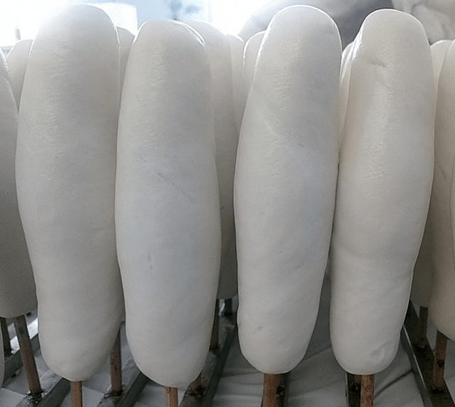 这样蒸出来的馒头,又细又长,软而有劲,头尾都可以完成一个圈,吃着筋道,越嚼越香,口感好,别有一番独特风味。