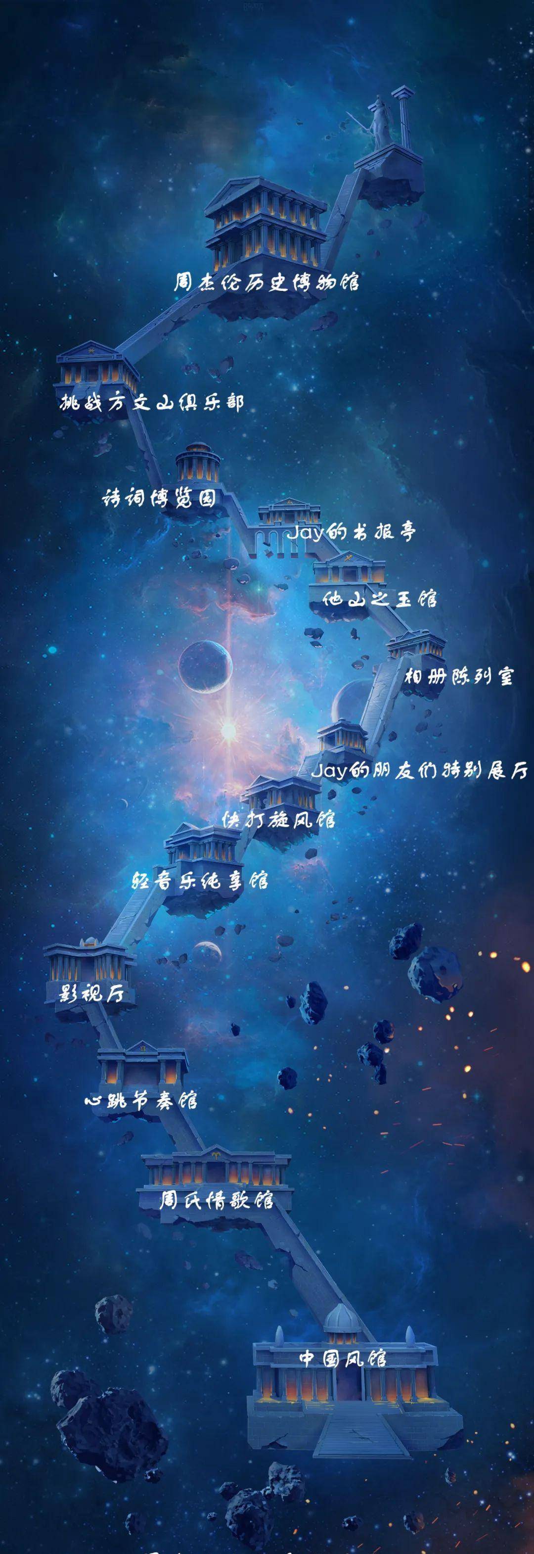 通过上述13座母馆,继而进入到对应的546座二级子场馆、三级子场馆,一览周杰伦的近500首音乐作品、17部影视作品,5部书刊、3000多张壁纸图片。
