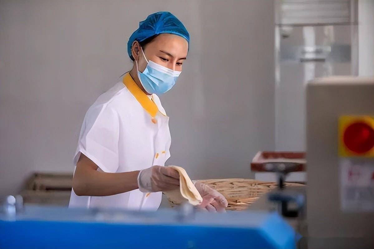 高青县田镇街道一家食品加工企业,工作人员在赶制小饼。