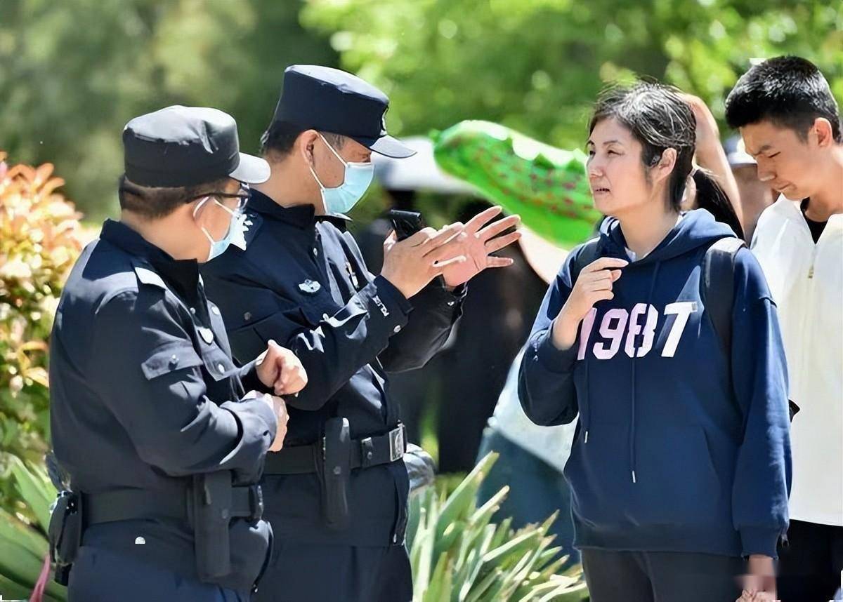 4月29日,淄博市公安局民警在齐盛湖公园为游客提供问询服务。