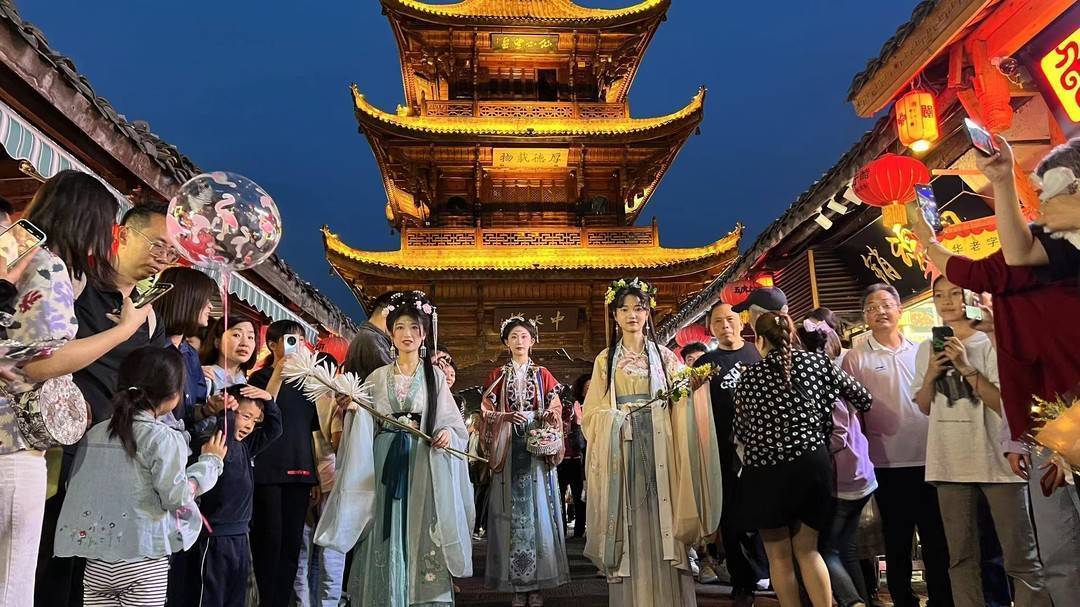古城贡院广场上,汉服风韵有礼秀也在同步上演,由60名汉服爱好者身着传统汉服服饰,广袖飘飘、衣裙轻拂、舞姿袅袅、躬礼赏乐……为市民带来了一场传统的文化盛宴,引得现场观众齐齐惊呼赞叹。活动现场还设有汉服摊位,通过展示、展卖汉服和汉元素饰品,让游客深度体验古城游。