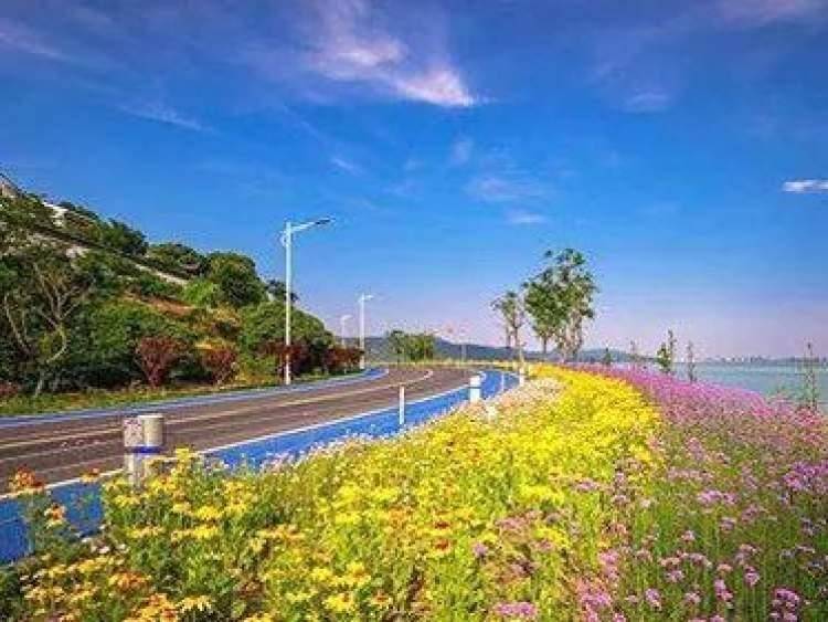 在苏州,不止有绕阳澄湖骑行,还有一条位于太湖大道上的蓝色骑行步道,堪称“苏州最美骑行天花板”。风光旖旎,路况绝佳,一路皆是风景!从稻香小镇出发,沿着太湖大道骑行至舟山路,你还可以看到不远的山坡上种满了油菜花,无论是拍风景,还是打卡游客照,都非常出片!