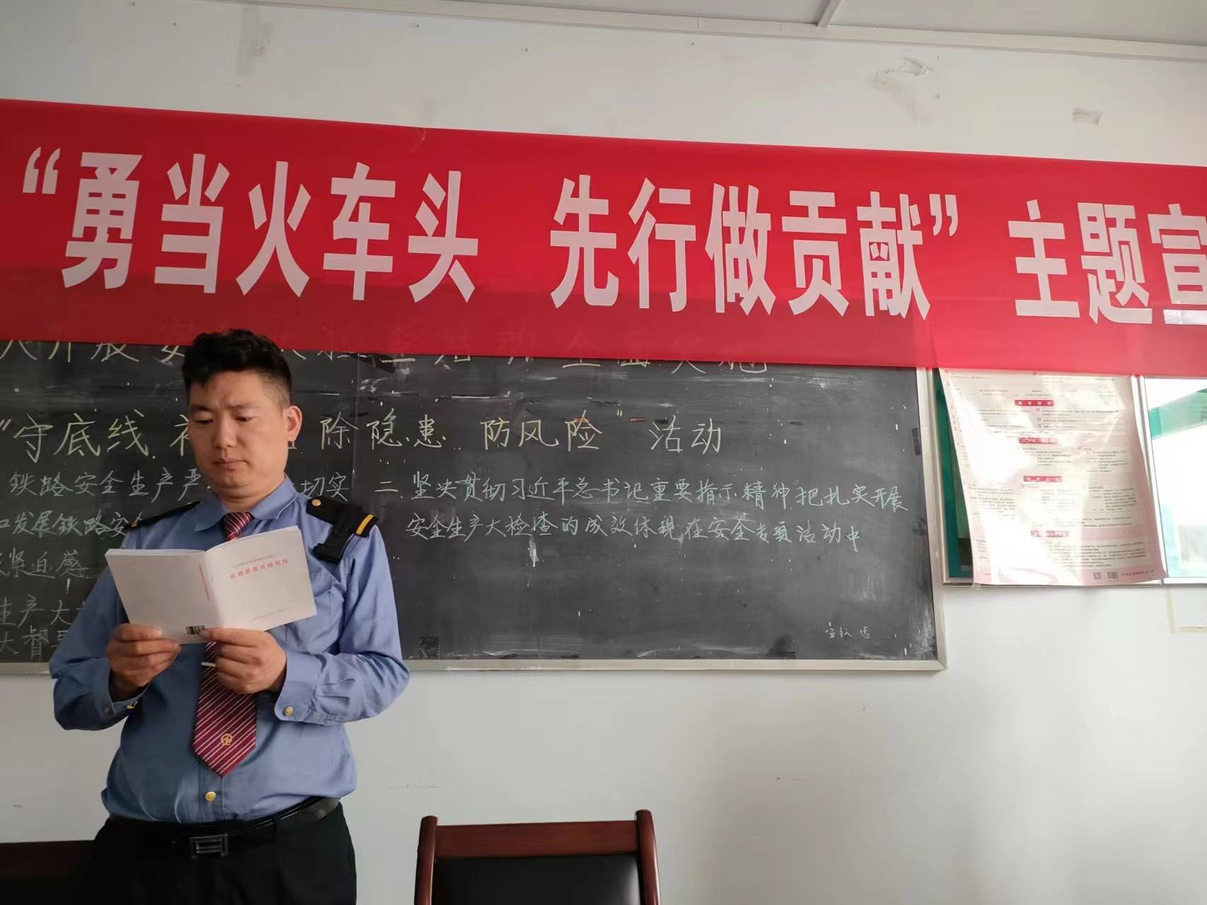 作为备乘班组,北京二队二组全体成员时刻担起备乘任务,5月1号早上八点到下午六点,全体乘务人员精神饱满,服装整齐,一边在车库开展工作,一边在等候上级指示。这短短的一个工作日,同志们在学习室展开了紧张的学习强补,学习安全知识、业务知识、作业标准,了解客流情况、主要压力和可能的风险。
