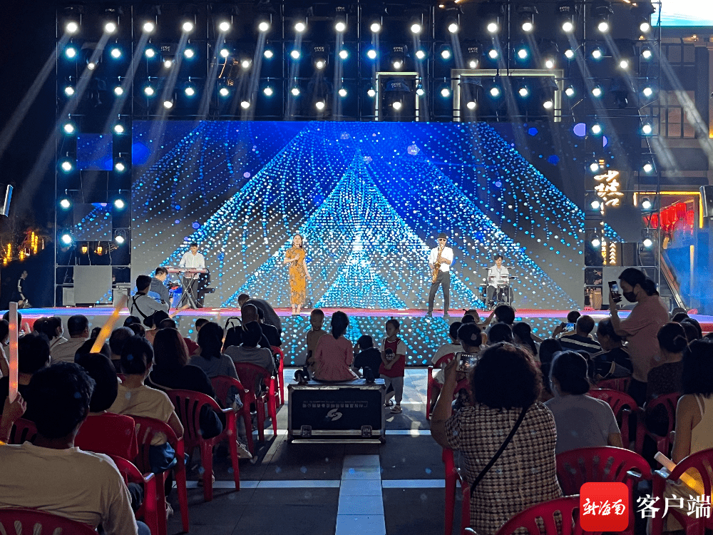 海风轻拂,市民游客穿行在东坡老码头,或驻足观赏演出,或品味享受美食,享受着椰城夜晚的悠闲时光。
