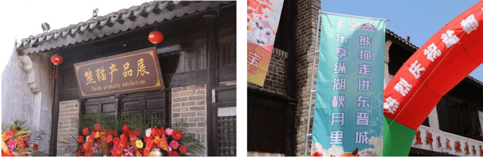 2023年5月1日,由四川天府文化传播中心、江苏省盐城市盐都区旅游协会、大纵湖旅游度假区主办,江苏纵湖秋月旅游文化发展有限公司、盐城黑白壹捌陆玖科技有限公司、卓面信息科技(苏州)有限公司、四川掌门熊猫品牌管理有限公司承办的“国宝熊猫周游大美盐都文创展”在江苏盐城东晋水城开幕。国宝熊猫与好朋友盐城“吉祥三宝”(丹顶鹤、麋鹿、勺嘴鹬)在盐城东晋水城相聚,共度美好五一劳动节。