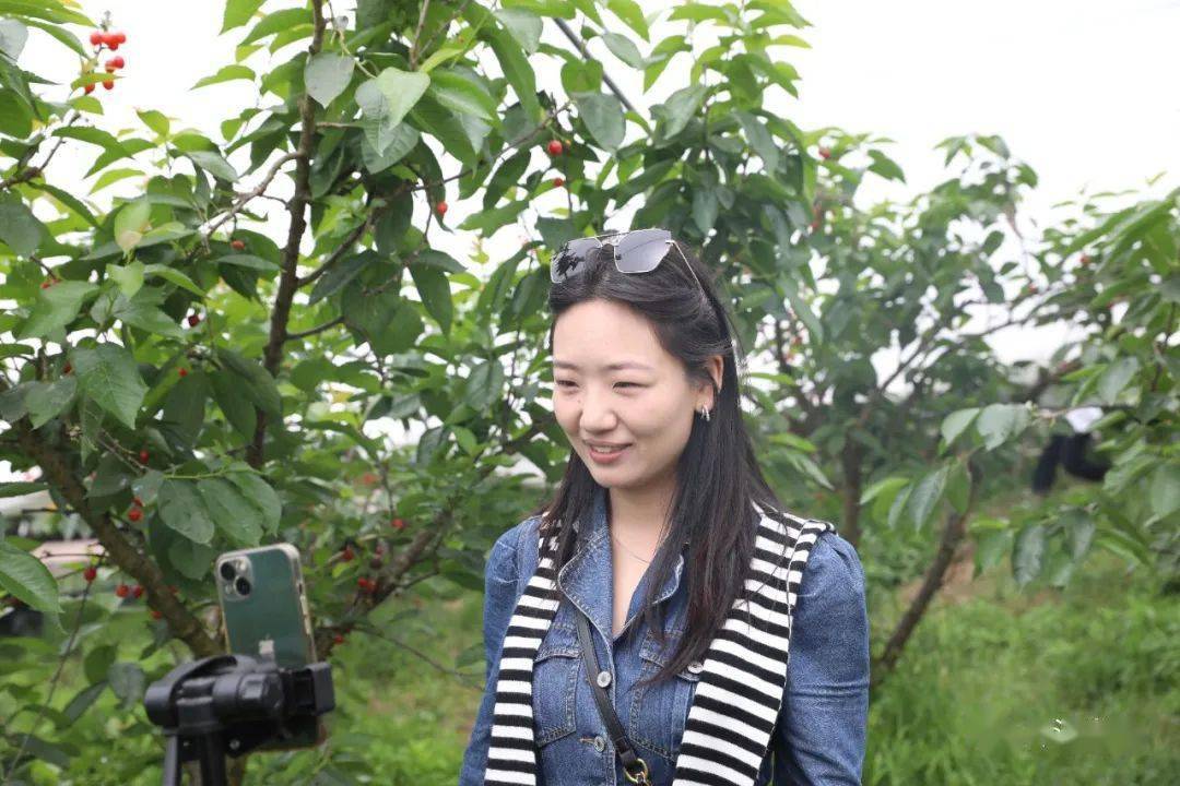“我这里是在普安镇东岳村红太阳采摘园,正在刚成熟的樱桃园里…”在普安镇东岳村红太阳采摘园里,主播正在对樱桃进行直播。