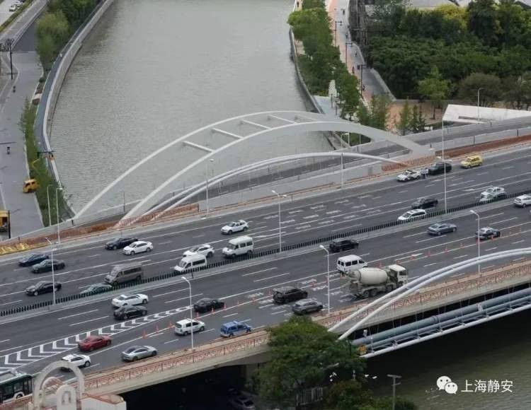 成都路桥,跨苏州河,南北走向,位于静安、黄浦两区交界处,贯通南北高架道路。该桥的宽度为55.5米,工程质量荣获中国建筑工程最高奖——鲁班奖。
