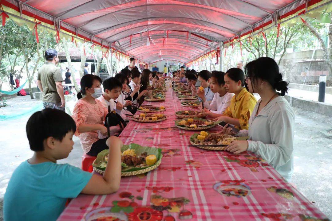 游客:开心,这里有山有水还有长桌宴、烧烤、我很开心。