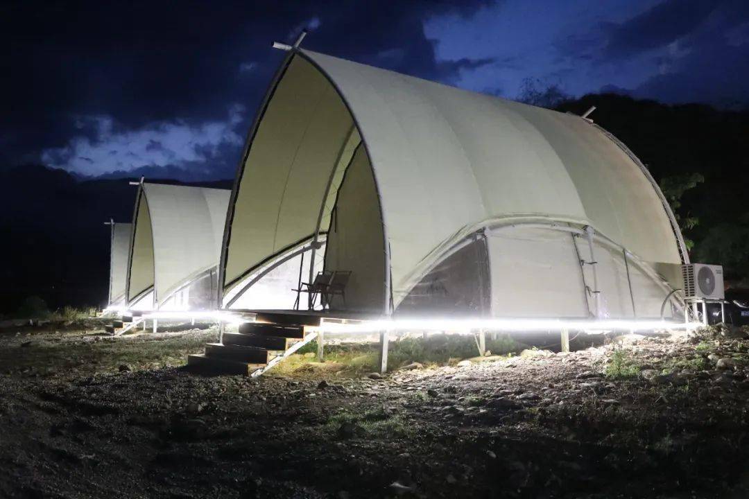 据了解,该露营地现有6套居住船型屋帐篷,5套蒙古包帐篷,自建帐篷平台7个,可接待住宿60人。营地还配置了大型空地、烧烤炉,游客可以在这里进行户外烧烤、围炉煮茶,篝火等多元化活动。