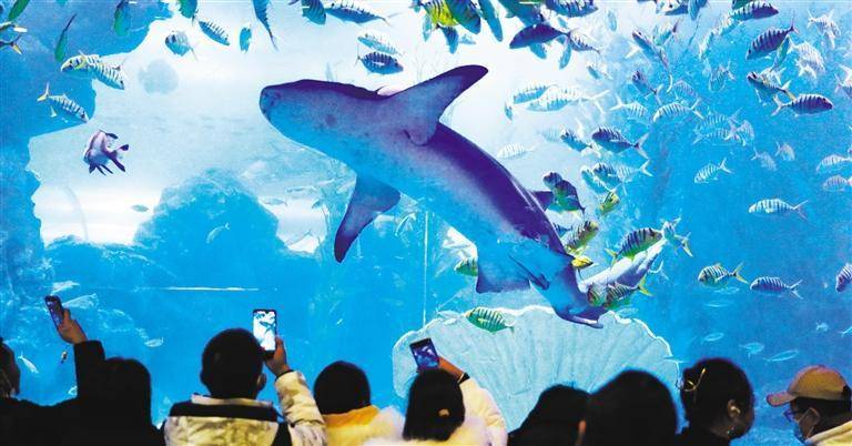 1月26日,游客在山东省青岛市海底世界参观游览。