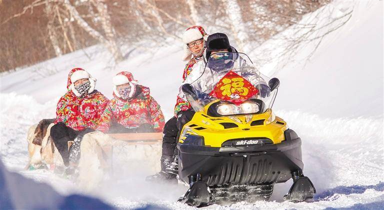 2月2日,游客在吉林省长白山景区体验雪地摩托。