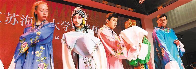 1月22日,江苏省连云港市海州区盐河巷连云港腔调小剧场,外籍留学生在学习淮海戏“甩袖”。