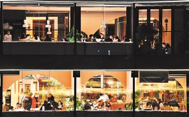 1月28日,湖南省郴州市苏仙区裕后街的餐馆生意火爆。