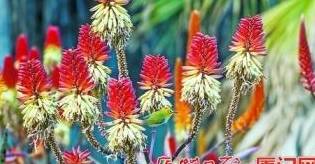 在厦门市园林植物园多肉植物区,菊花芦荟、非洲芦荟等正值花期,竞相吐蕊,饱满嫩绿的叶片,搭配上红色或黄色的花蕊,显得娇艳欲滴。木栈道旁,成片的多肉红珊瑚,枝头红红火火,分外惹眼。
