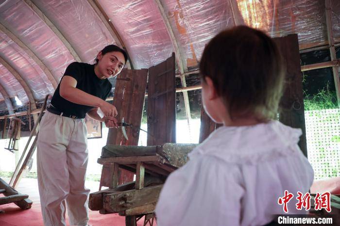 妈妈在教小朋友如何使用农具。 陈家乐 摄