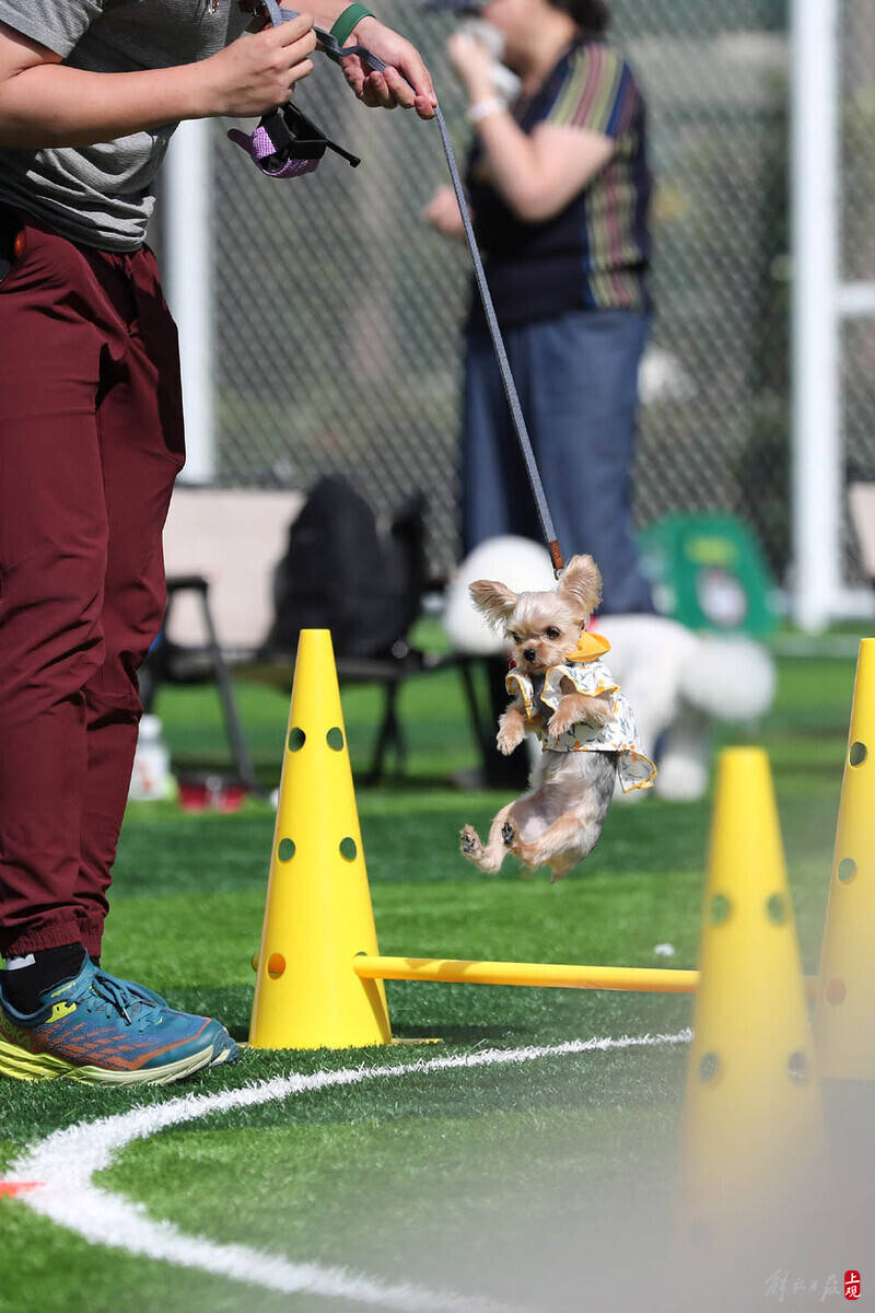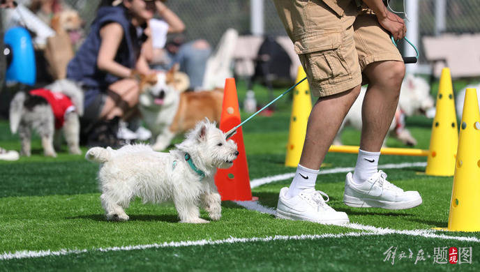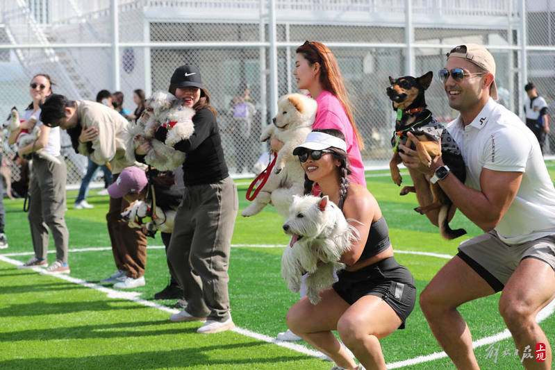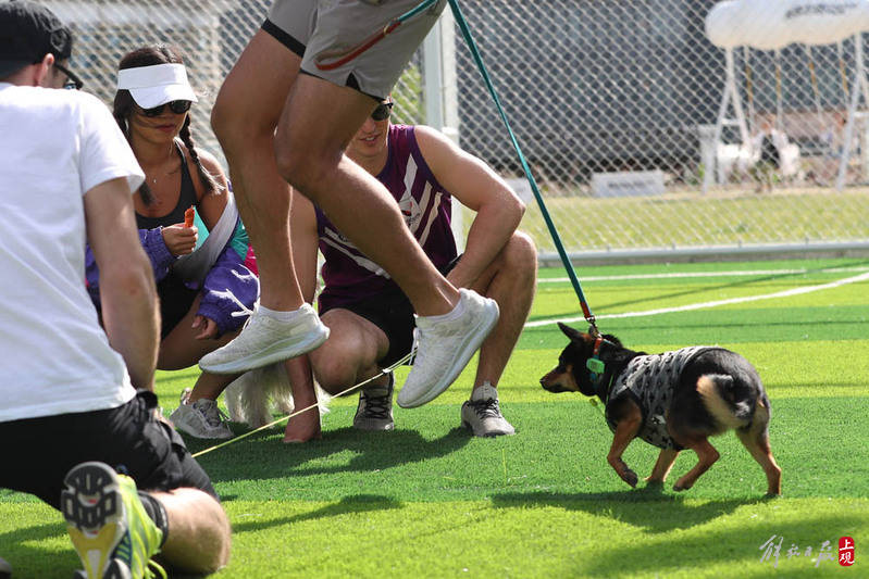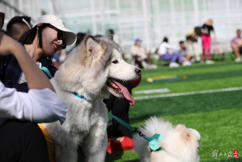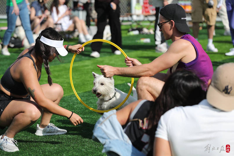 一场宠物运动会在北外滩来福士楼顶公园举行,五一假期余额不足,带上家人和宠物就近出游。
