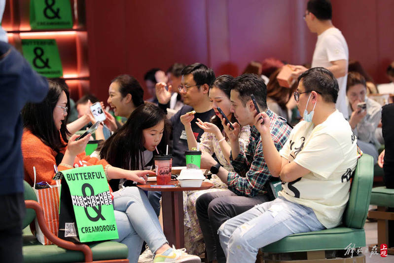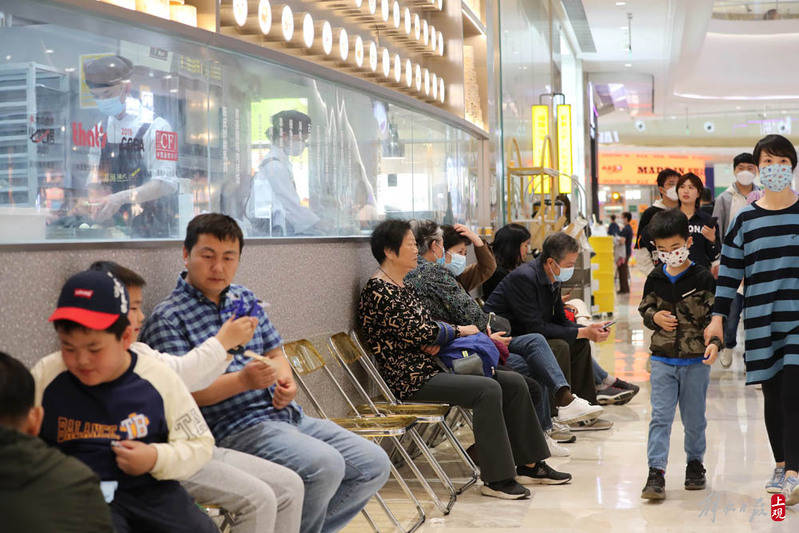 北外滩来福士商场里,用餐一位难求,店门口再现排队场景。