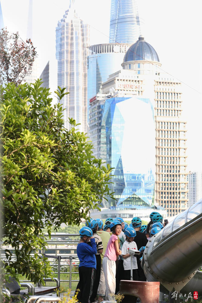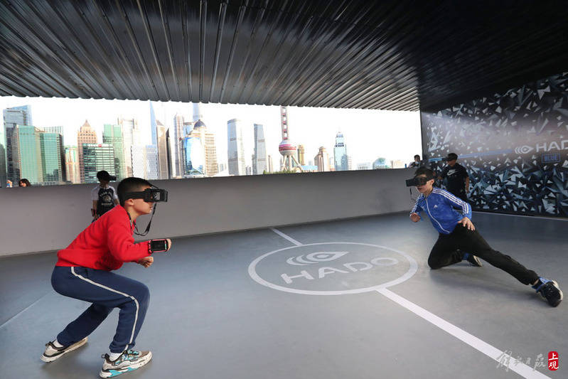 北外滩滨江,孩子们组队进行AR科技运动。