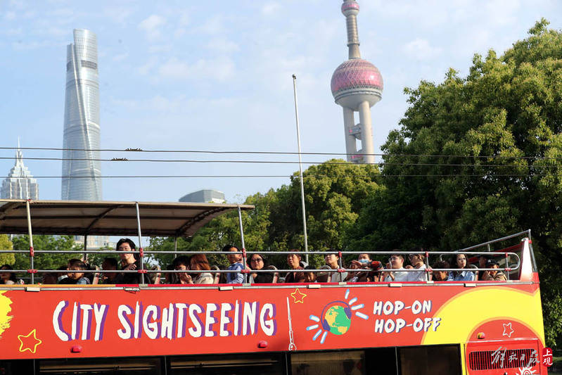 双层观光巴士几乎没有空位,载着市民和游客穿行在黄浦江两岸,饱览城市美景。