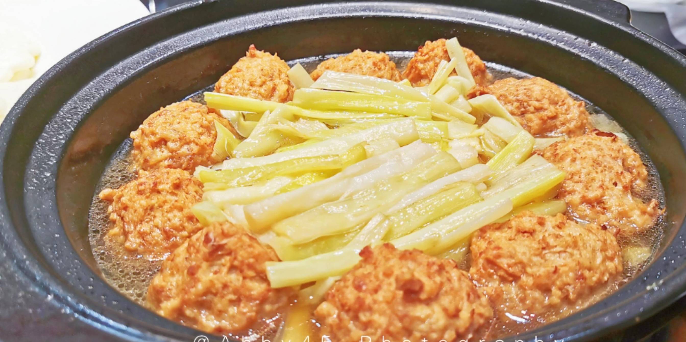 我们点了不少美食,下面推荐几道我个人比较喜爱的特色菜。首先是蒲菜肉圆,这是开洋蒲菜和钦工肉圆的结合。蒲菜是传统名菜,为江苏省淮安市特产,主要原料为蒲菜的根茎。此菜清香甘甜,酥脆可口,似有嫩笋之味,味鲜爽口,营养丰富。而钦工肉圆选料讲究,制作精细,配料多样。吃起来光滑细嫩,富有弹性,味道鲜美,有健身美容、补中益气、提高免疫力等食疗作用。两者结合相得益彰,美味加倍。