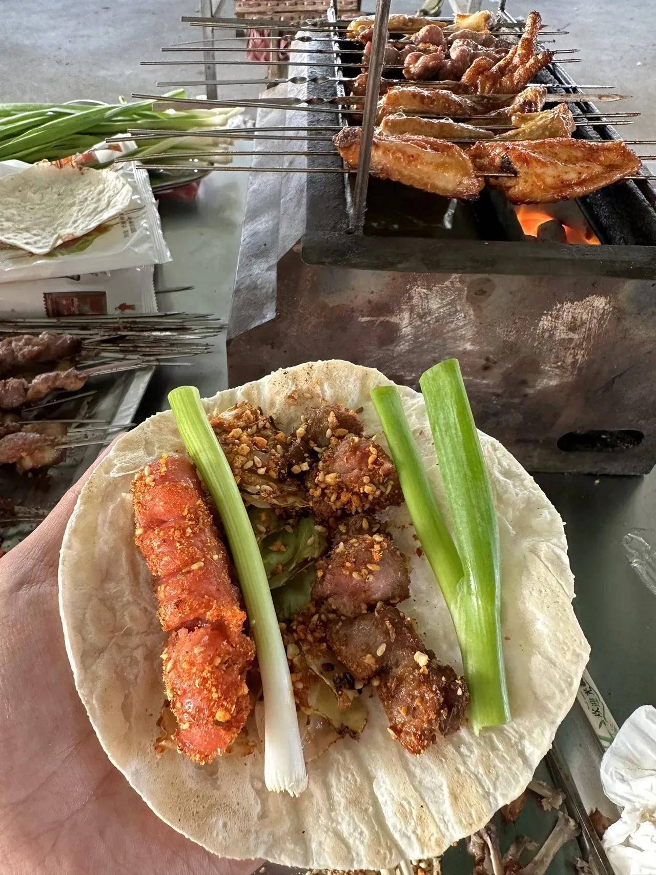 来到烧烤城的时候已经接近下午三点,这里也已经开启了人山人海的模式,虽然人比较多,但是一切都井然有序,刘康一家逛了一会,找了一家有空位的店坐下,开启这次淄博之行的主题——撸串。