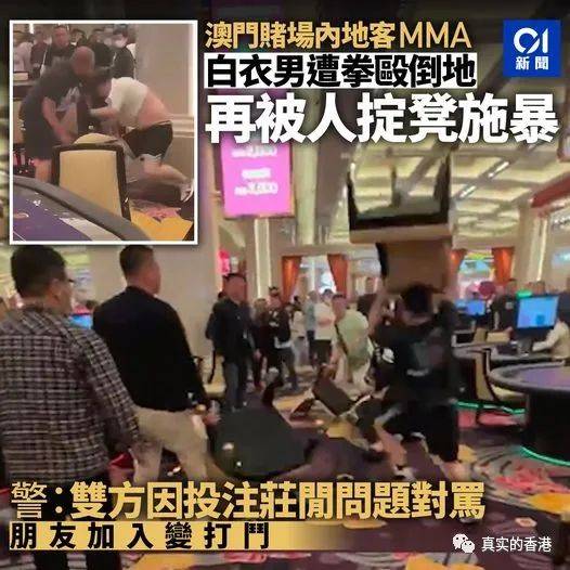 5月1日的澳门,好几段视频在网络疯传,在澳门的赌场里面,好几个男子相互围殴, 众人拳来脚往,其间有人以赌厅椅櫈殴打一男子。目击者纷纷拍下片段,场面一度混乱。