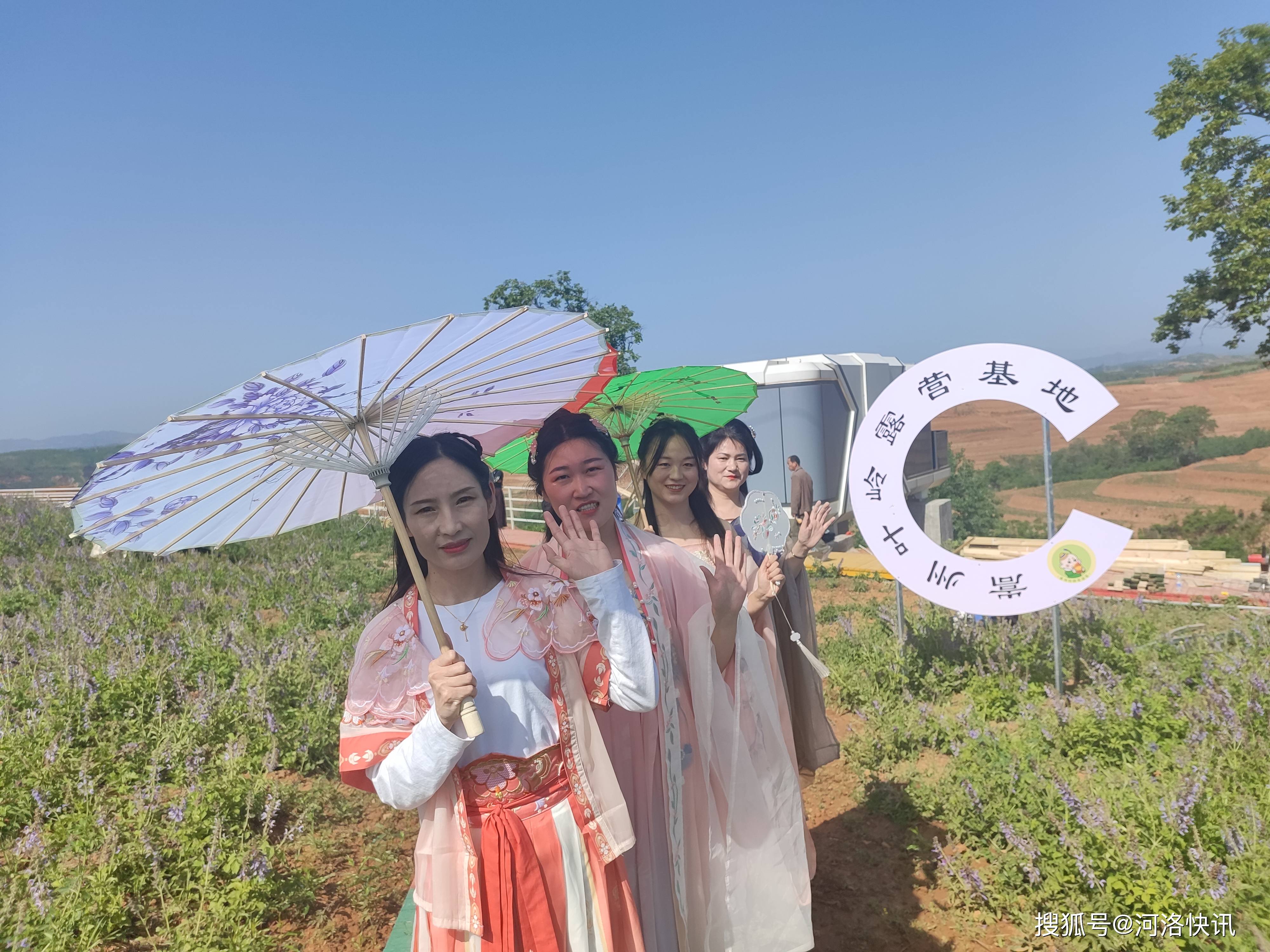 顺着洛阳市嵩县“湖山圣域”百里画廊旅游公路穿越城关镇叶岭村,看到万亩丹参基地丹参花盛开,成了一片紫色的海洋。游客们粉妆玉黛,身着华丽的汉服游走其间,赏花拍照留影,保存一份珍贵的记忆。丹参驿站里载歌载舞热闹非凡,人们列队打起了八段锦,琴师们在太空舱前弹起了古筝;熙熙攘攘的人群中,撑油伞着汉服的女子、摇扇纶巾的男子擦肩而过;孩童们在老师及家长的带领下,手提竹篓走进丹参种植基地采摘丹参叶,并将采好的叶片送到农家制茶坊,沉浸式体验一把制做丹参茶的工艺......