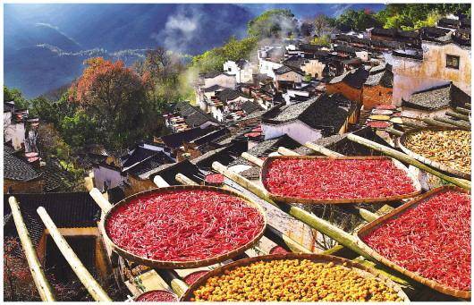 ▲篁岭古村居民晾晒的农作物。新华社发(曹加祥摄)